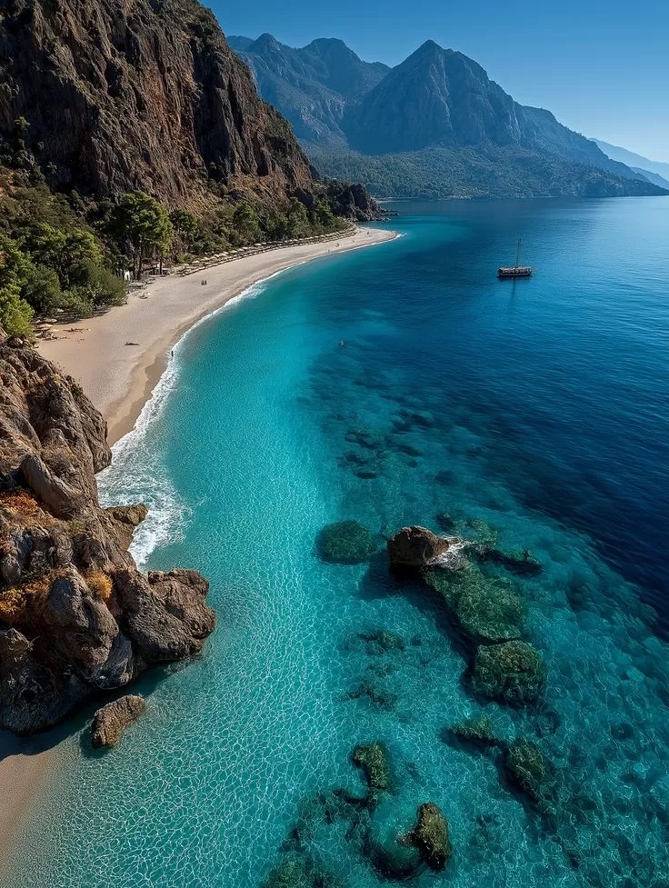 - Turkuaz sularıyla ünlü Adrasan Plajı’nda deniz keyfi yapıyoruz